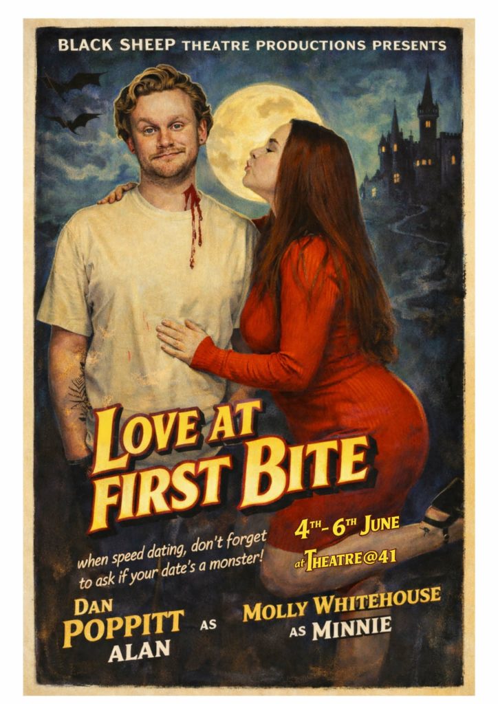 They did the monster match: Dan Poppitt’s Alan and Molly Whitehouse’s Minnie in Black Sheep Theatre Productions’ poster for Love At First Bite