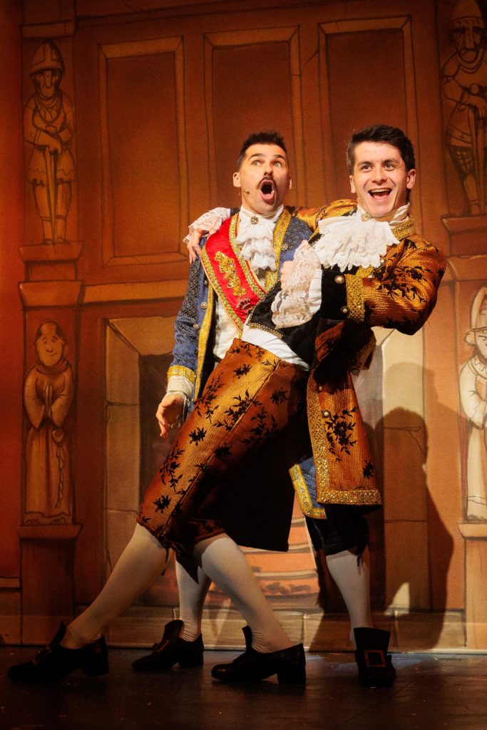 Bradley Judge’s Dandini, left, and Tobias Turley’s Prince Charming larking around in Cinderella