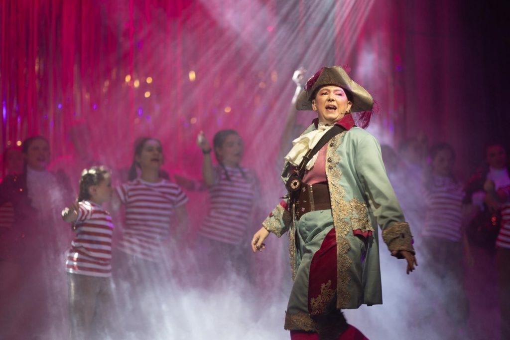 Rob Bannon leads his band in brisk fashion, matched by Xena Gusthart’s happy and hearty choreography for principals, ensemble and Dance Expression School of Dance juniors alike. Set design is never the strongest point of UK Productions’ York pantos, lacking local detail, but there is gold dust to the walkdown finale as each character throws a glittering flurry of ticker tape over themselves on entry: Kerkhoven’s most original directorial flourish. The gold after all that blue.