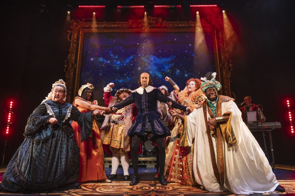 Harrie Hayes’s Queen Elizabeth I makes her point to Richard David-Caine’s William Shakespeare in Horrible Histories: The Concert, Live And Dead On Stage! Picture: Matt Crockett