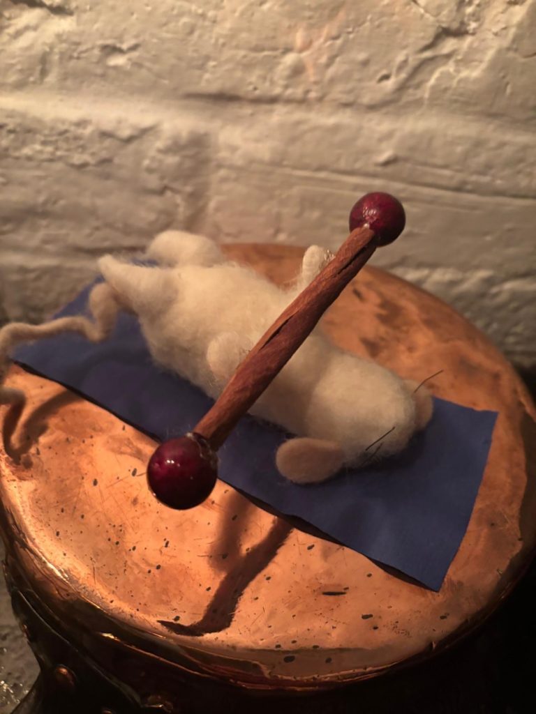 A mouse making off with the cheese at A Christmas Mousequerade at Fairfax House. Picture: Celestine Dubruel