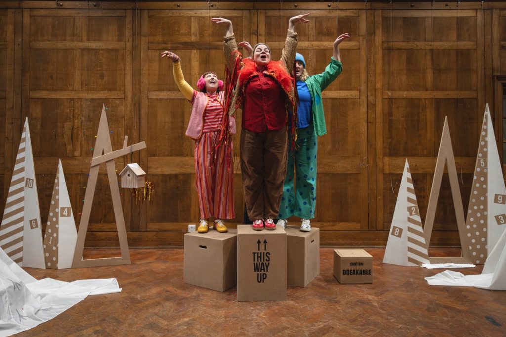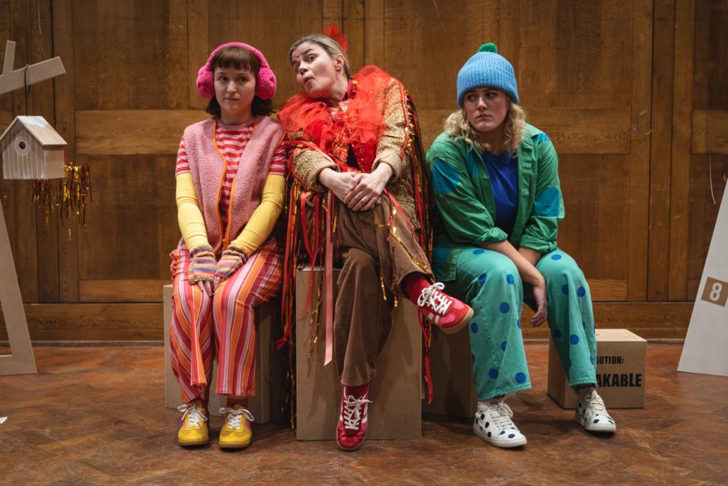 Emily Chattle’s Lowen, left, Ceridwen Smith’s Robin and Annie Rae Donaghy’s Ellis on Catherine Chapman’s child’s play of a set design