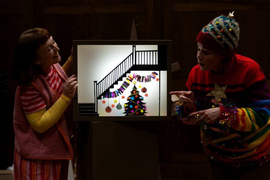 Those fairy lights and Ellis’s Mac’n’Cheese Christmas Day lunch feature in stories told with delightful interplay, typically imaginative direction by Harper-Hardcastle and highly engaging characterisation by Chattle, already such a whizz at children’s entertainment, and Donaghy, back home for Christmas in York after graduating with first class honours in contemporary theatre at East 15 Acting School and taking her first steps in London’s theatre jungle.