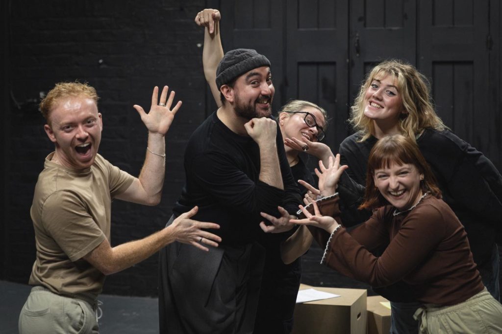 Movement director Bailey Dowler, left, writer-director Matt Harper-Hardcastle, Ceridwen Smith, Annie Rae Donaghy and Emily Chattle in rehearsal for When Robins Appear
