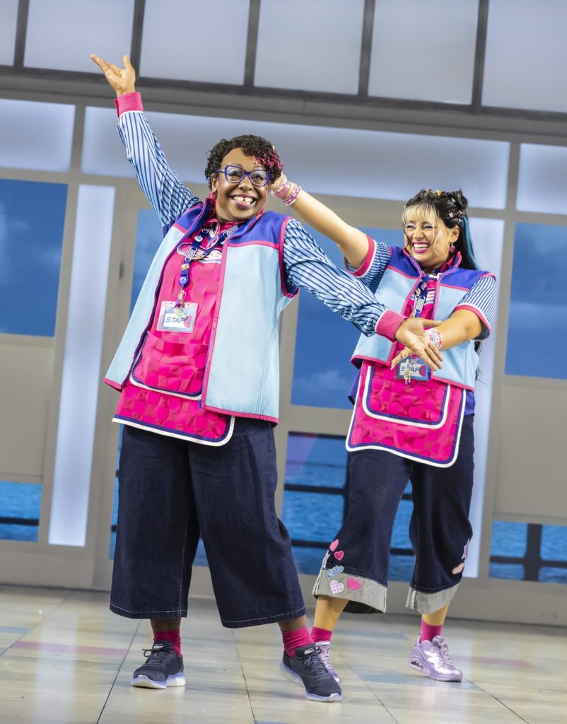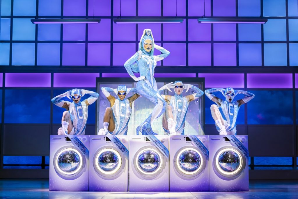All contribute to the sassy show’s sights and sounds, playing playfully with the Steps iconography in the cause of a fun and hit-filled party night out (or matinee, if you want to make a day of it) on an open-plan set that has towers of immaculately stacked shelves to each side, pier railings and blue sea behind and bluer sky above.