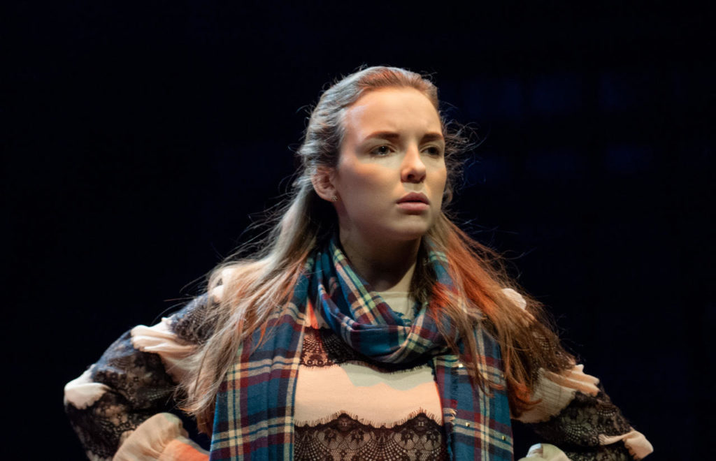 In the trolley: Lara Denning’s Caz being spun a lie by Chris Grahamson’s Gareth in Here & Now. Picture: Pamela Raith