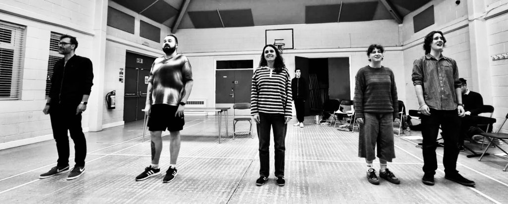 Dale Vaughan, left, Ryan Richardson, Monica Frost, Niamh Rose, Fergus Green and Matthew Warry, at the back, in rehearsal for Pick Me Up Theatre’s Next To Normal
