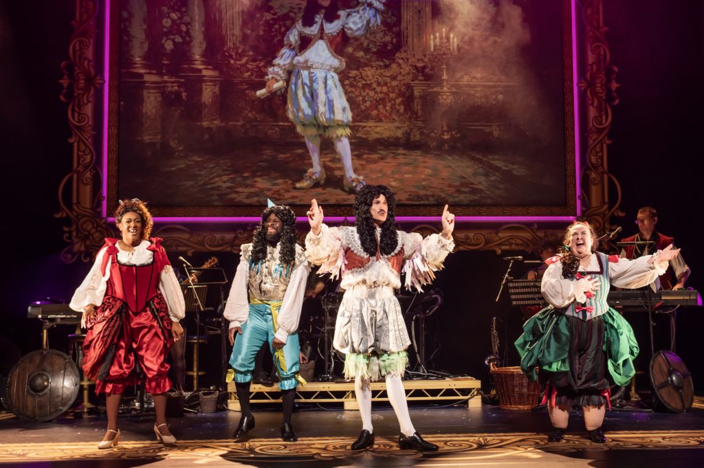 Harrie Hayes’s Queen Elizabeth I makes her point to Richard David-Caine’s William Shakespeare in Horrible Histories: The Concert, Live And Dead On Stage! Picture: Matt Crockett