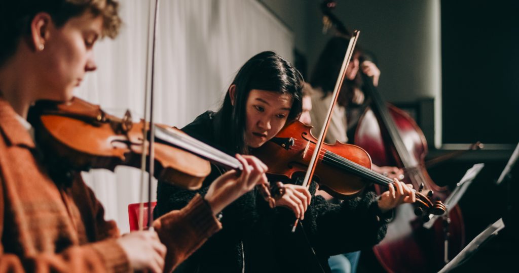 Ben Hopkinson’s Synaefonia violin players Kit Shepherd and Manlu Du