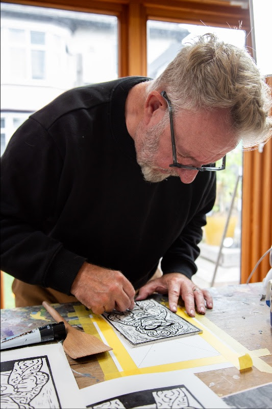 Lino print art demonstration at Fangfest Festival of Practical Arts in Fangfoss