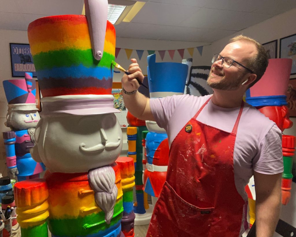 Mark Godfrey-Murphy painting one of the Kids Takeover designs for the York Nutcracker Trail