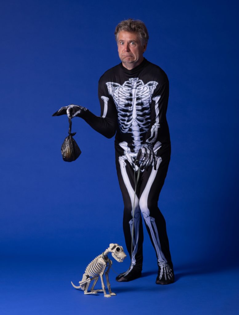 Super scooper: Funny Bones comedian Rob Rouse and his skeleton dog on tour at Helmsley and Scarborough