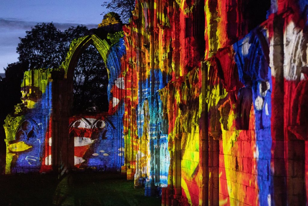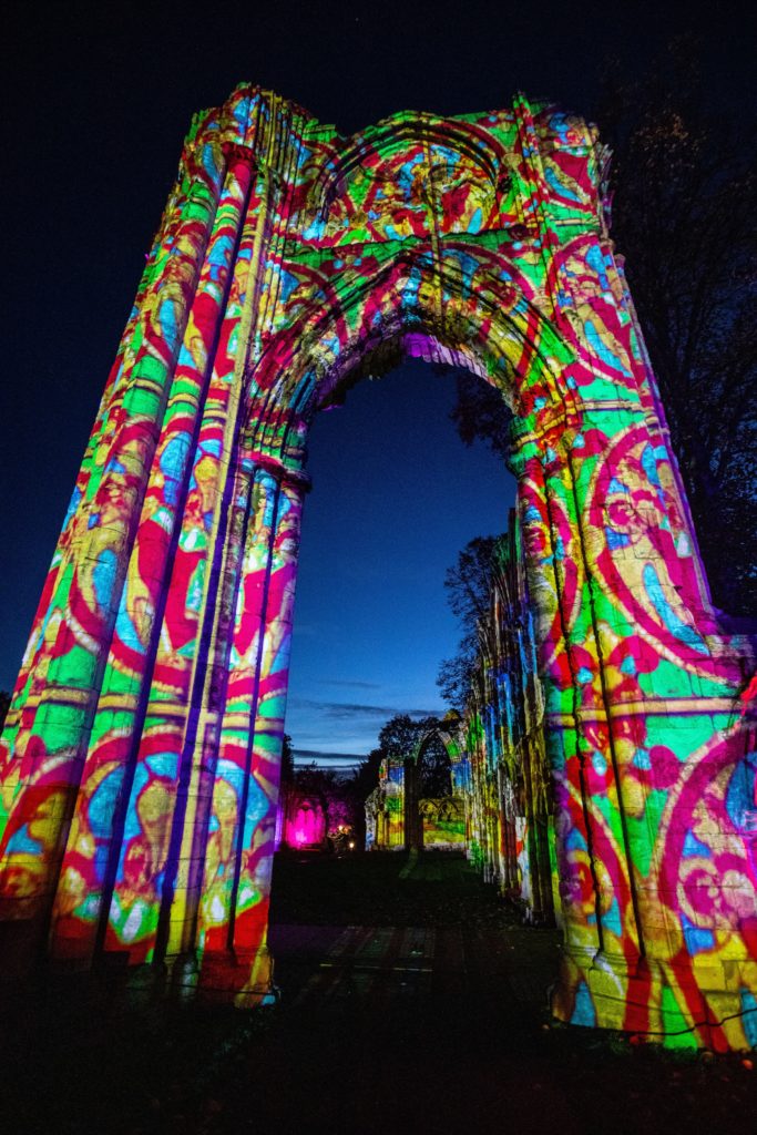 St Mary’s Abbey ruins bathed in the art and light of Luxmuralis’s Echoes Of Yorkshire. Picture: Duncan Savage, Ravage Productions, for York Museums Trust