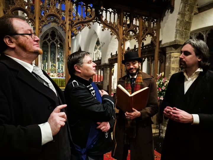 Baron Productions’ cast members at St Mary’s Church, Bishophill Junior, York, where they will perform Friday and Saturday’s Sherlock Holmes double bill