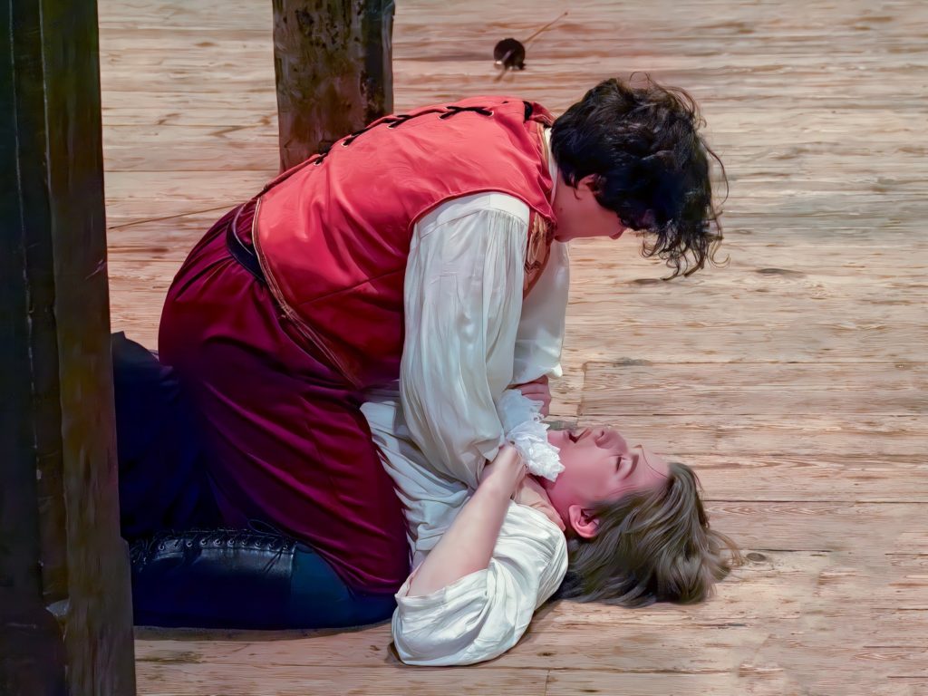 “And then there’s the world of the Boar’s Head Inn, the trashy Eastcheam tavern where Falstaff reigns over the comedy side of things: elaborate wordplay, plays-within-plays, wine and women and song.