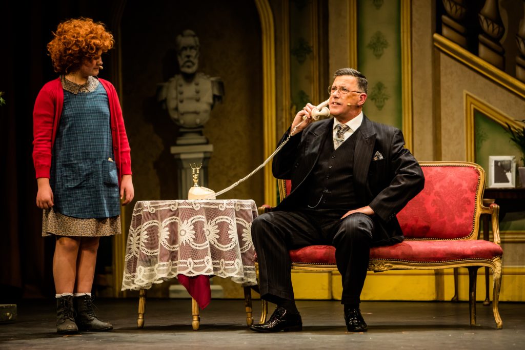 Neil Wood’s Oliver “Daddy” Warbucks and Hope Day’s Annie in York Light Opera Company’s Annie at York Theatre Royal. Picture: Matthew Kitchen Photography