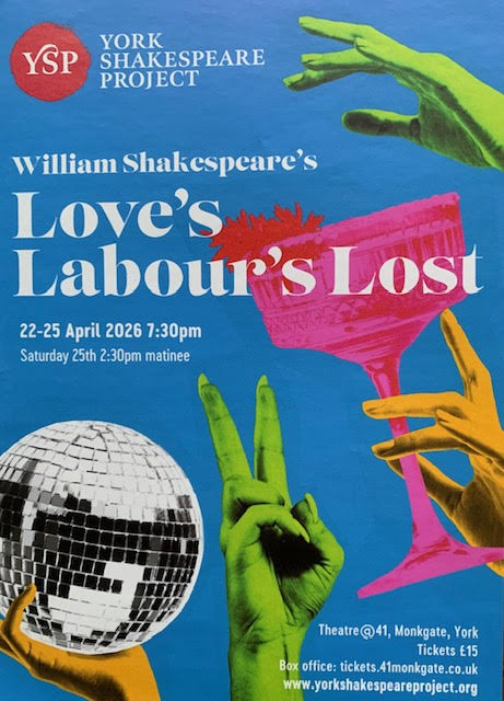 York nightlife drama of the week: York Shakespeare Project in Love’s Labours Lost, Theatre@41, Monkgate, York, April 22 to 25, 7.30pm plus 2.30pm Saturday matinee