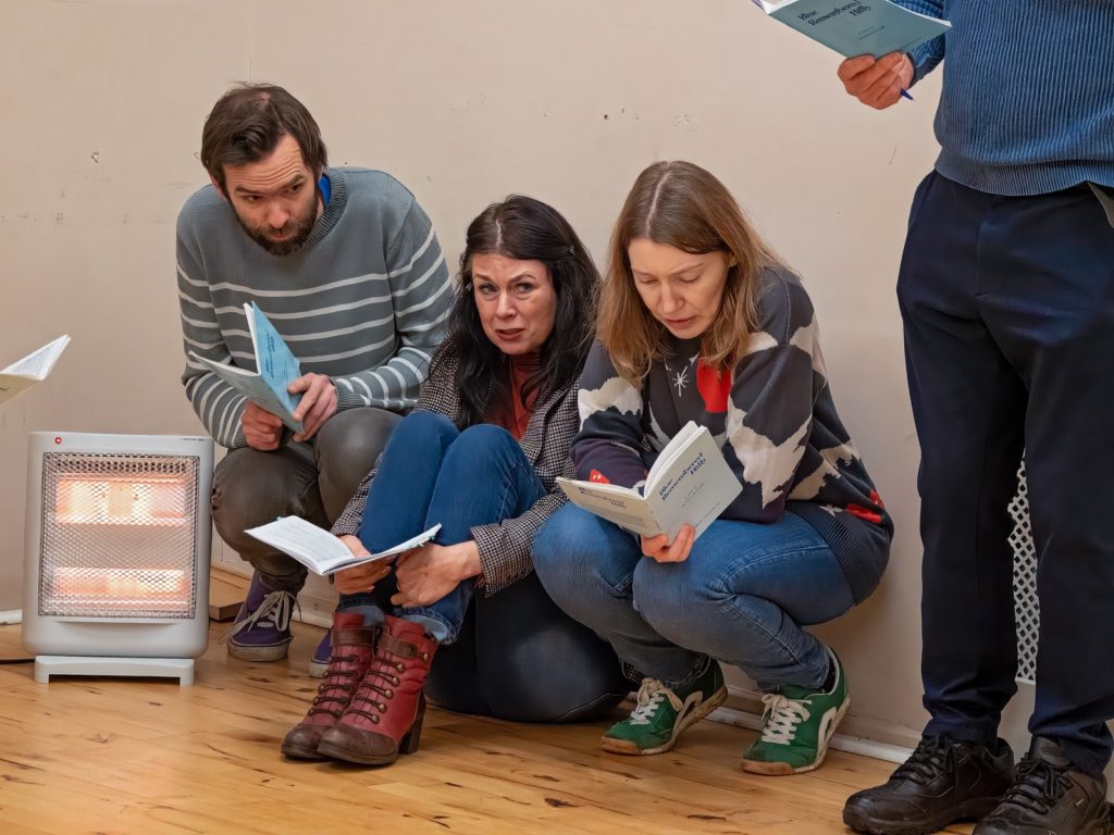 Victoria Delaney in the Blue Remembered Hills rehearsal room