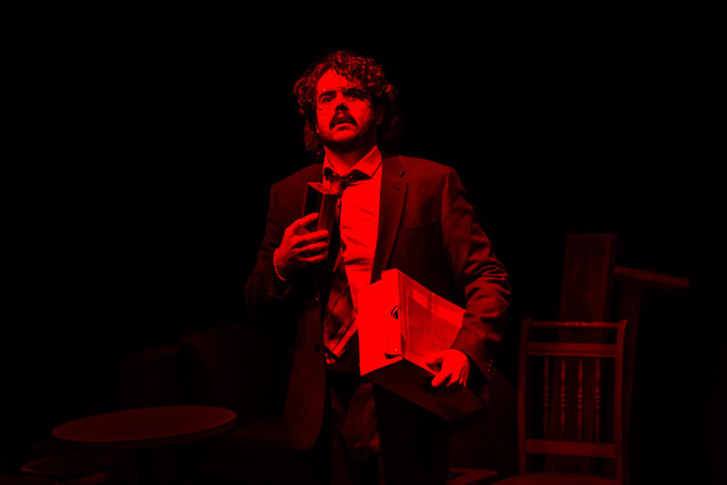 Michael Cornell bathed in red light in The Wetwang Hauntings –Live