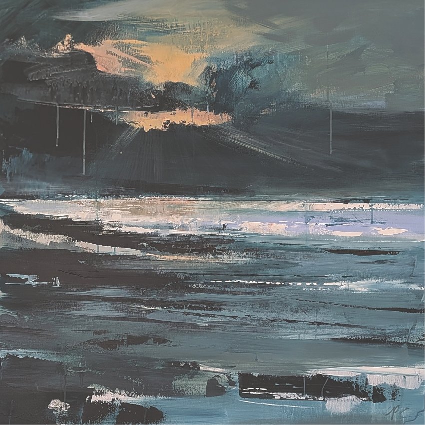 Described by Terry as “a painter of gorgeous seas and skies”, Carolyn has chosen seascapes as her primary subject matter and likes to capture atmosphere, usually with a leaning towards dark and moody, and generally on a larger scale.