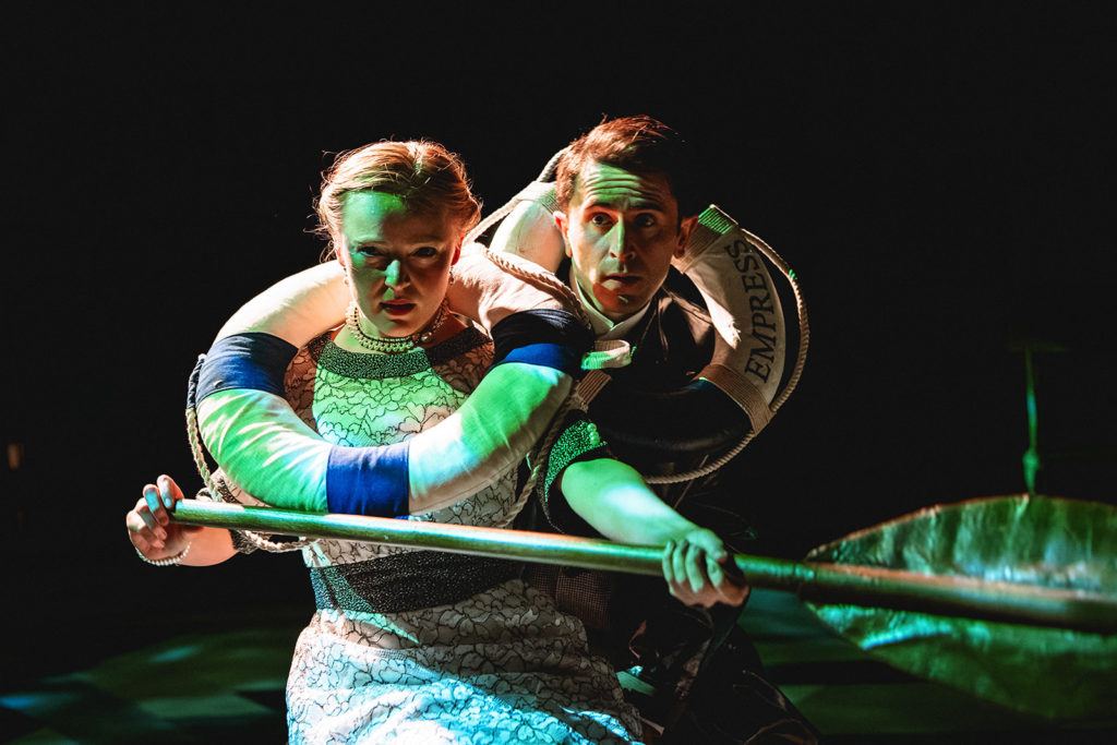 Alice Pryor’s Nella Racksole and Thomas Cotran’s Prince Aribert of Posen take to the water in The Grand Babylon Hotel. Picture: Andrew Billington
