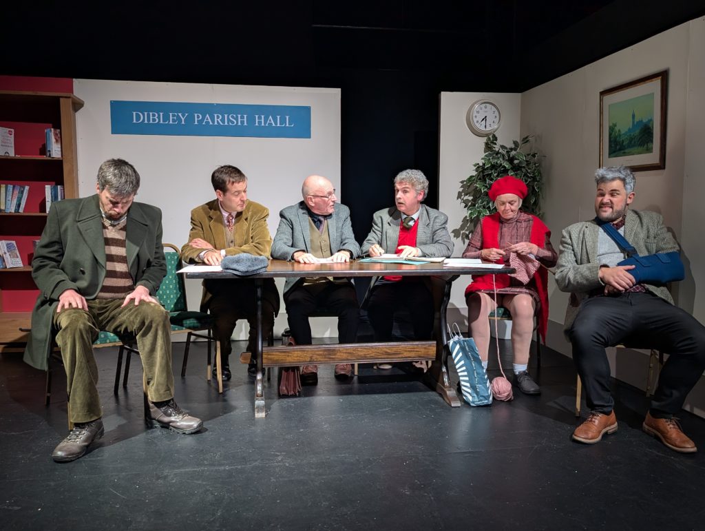 The play opens with Mills’s grouchy parish council chairman David Horton hosting the meeting where the new vicar will make a first appearance. In attendance are his awfully nice son Hugo (Neil Foster); the stickler-for-accuracy minute-noting parish clerk Frank Pickle (Mike Hickman); knitting-on-her-knee Letitia Cropley (Jeanette Hunter) , creator of endless inedible cakes and sandwiches, and no-no-no-no-yes man Jim Trott (a gurning Adam Sowter, left arm in a sling, presumably not for extra comic effect?!).