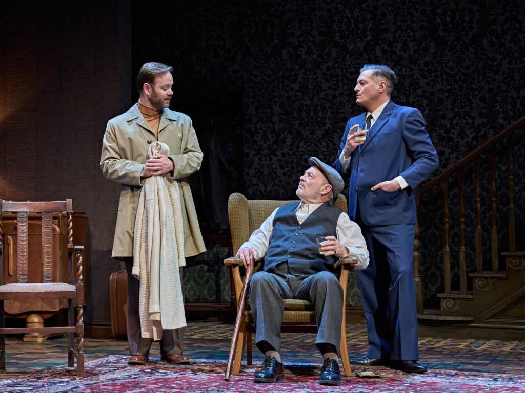 Max, a cantankerous King Leer, sets the mood, switching without warning from vicious viper to florid sentimentality, belittling his brother, quietly resolute chauffeur Sam (Ian Bartholomew), and winding up his sons with his bragging.