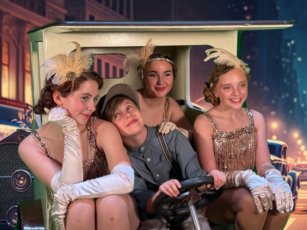 Fizzy with the singers in Pick Me Up Theatre’s Bugsy Malone: Theo Rae, Isla Lightfoot, Olivia Swales and Beau Lettin