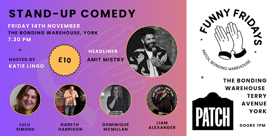FUNNY Fridays will return to Patch@Bonding Warehouse, Terry Avenue, York, on November 14.