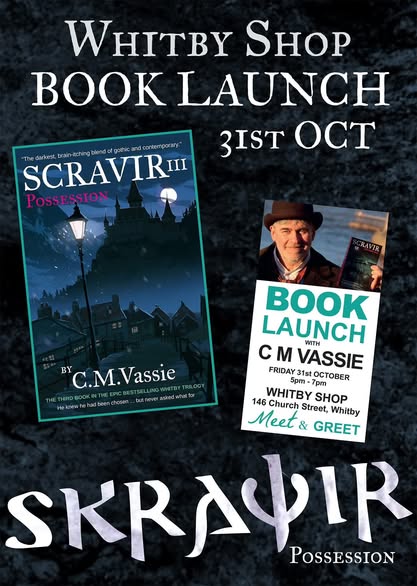 THE third book in York author C.M. Vassie’s SCRAVIR trilogy of Whitby supernatural thrillers will be launched at  a 5pm to 7pm signing session  this evening at the Whitby Shop, on Church Street, amid the buzz of Whitby Goth Weekend.